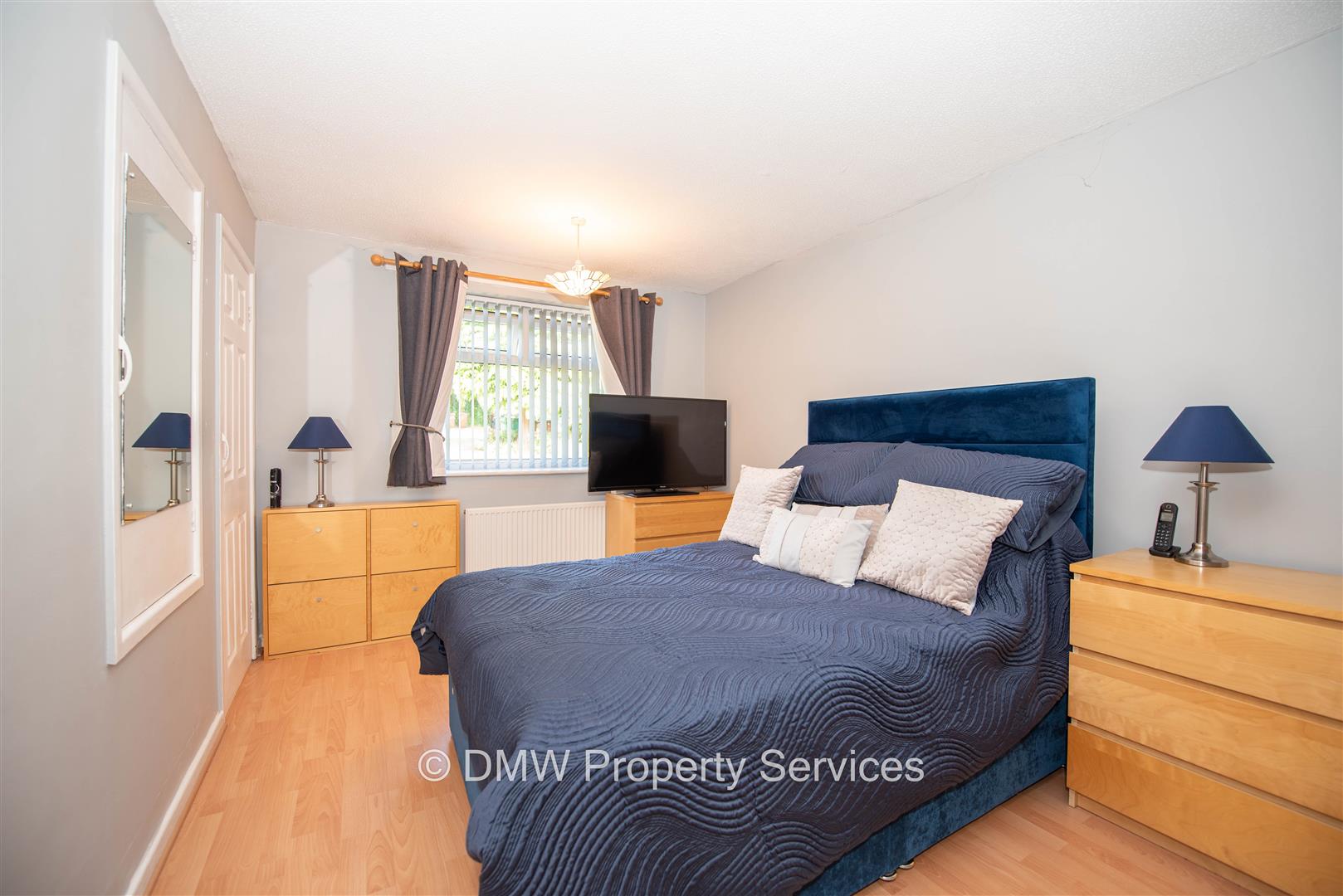 Built in wardrobes. Wood effect flooring.