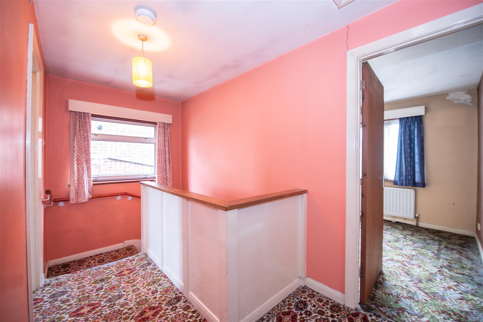 Doors to all bedrooms and the bathroom. Floor standing gas boiler.