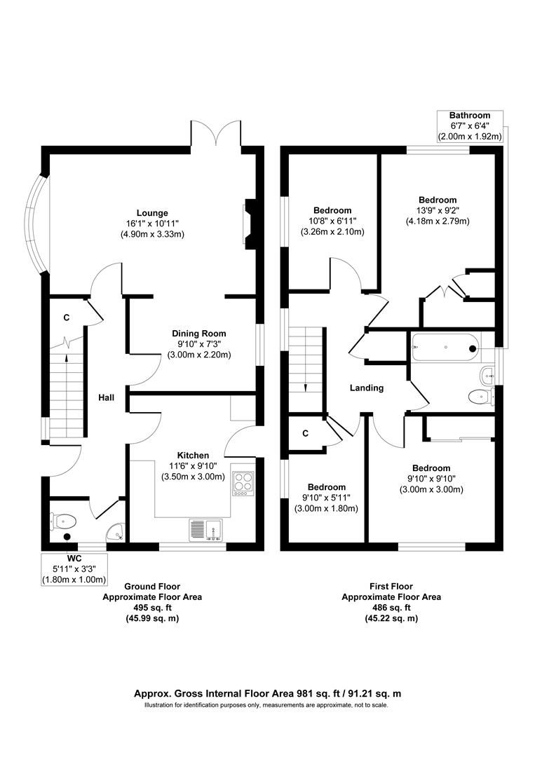 Doors to the Lounge, Kitchen, Dining Room and W.C.