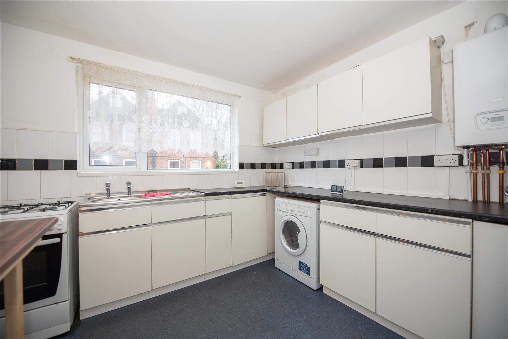 A range of base and wall units. Wall mounted gas combination boiler. Window to the front.