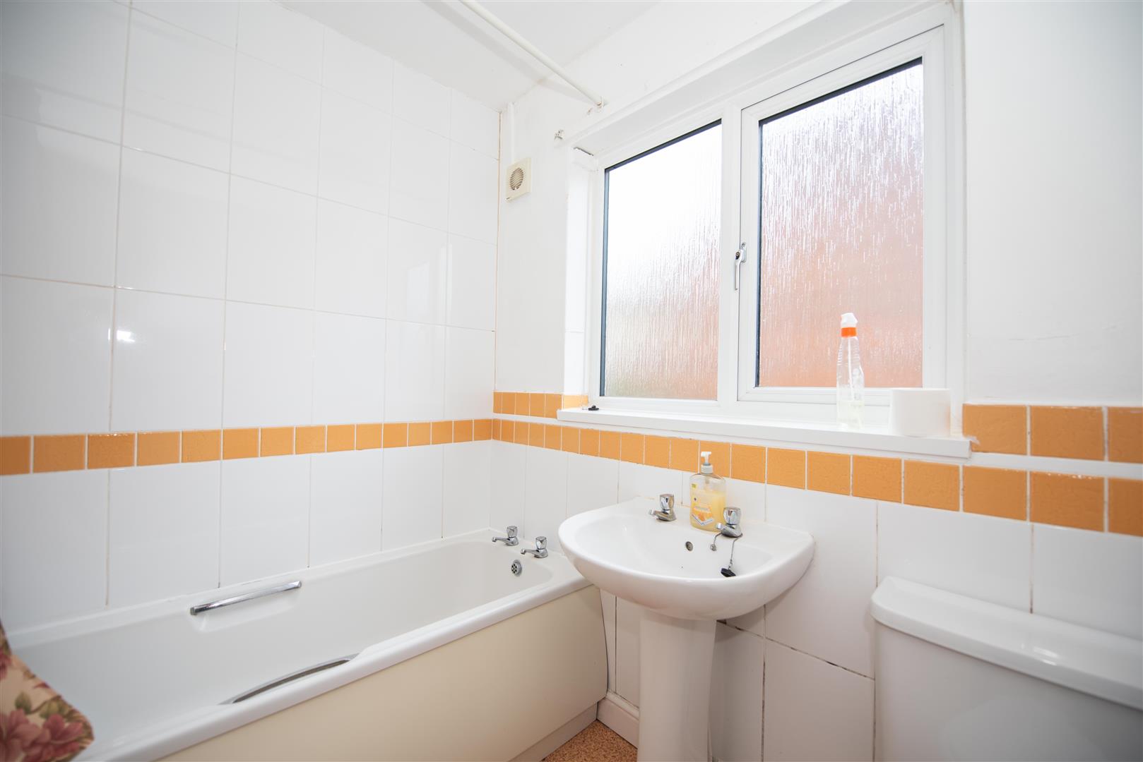 Window to the side. Bath. Pedestal wash hand basin. Toilet. Extractor.